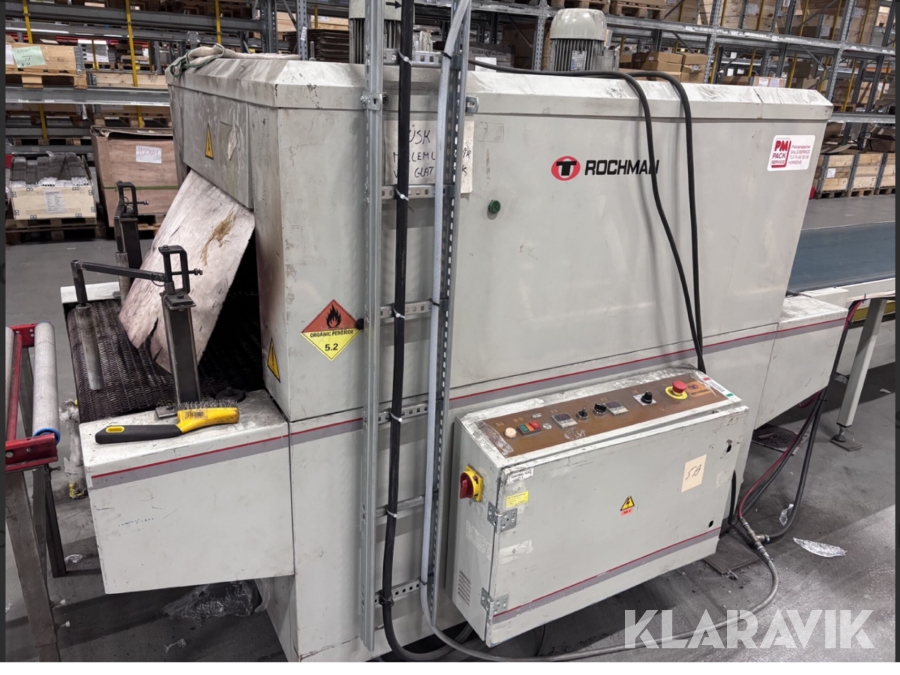 Plastningsmaskin inklusive rullbanor och krympugn Rochman