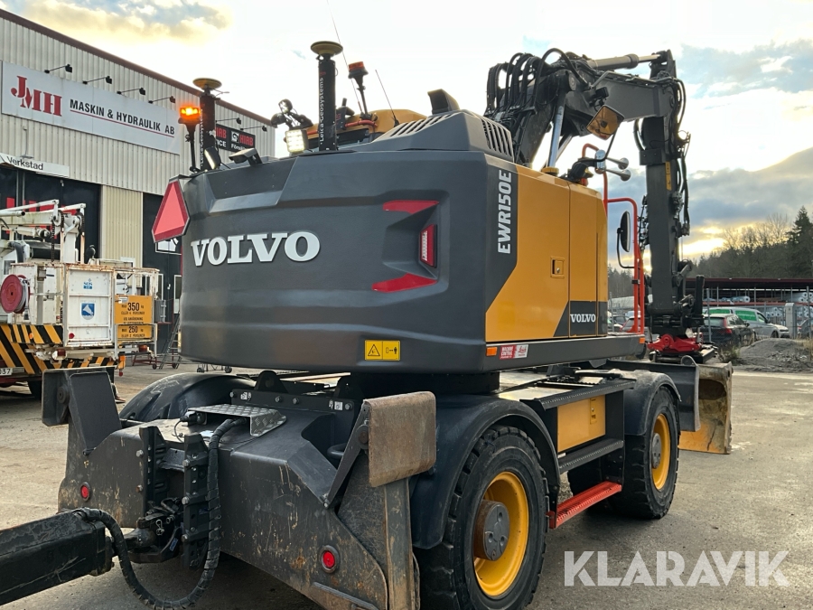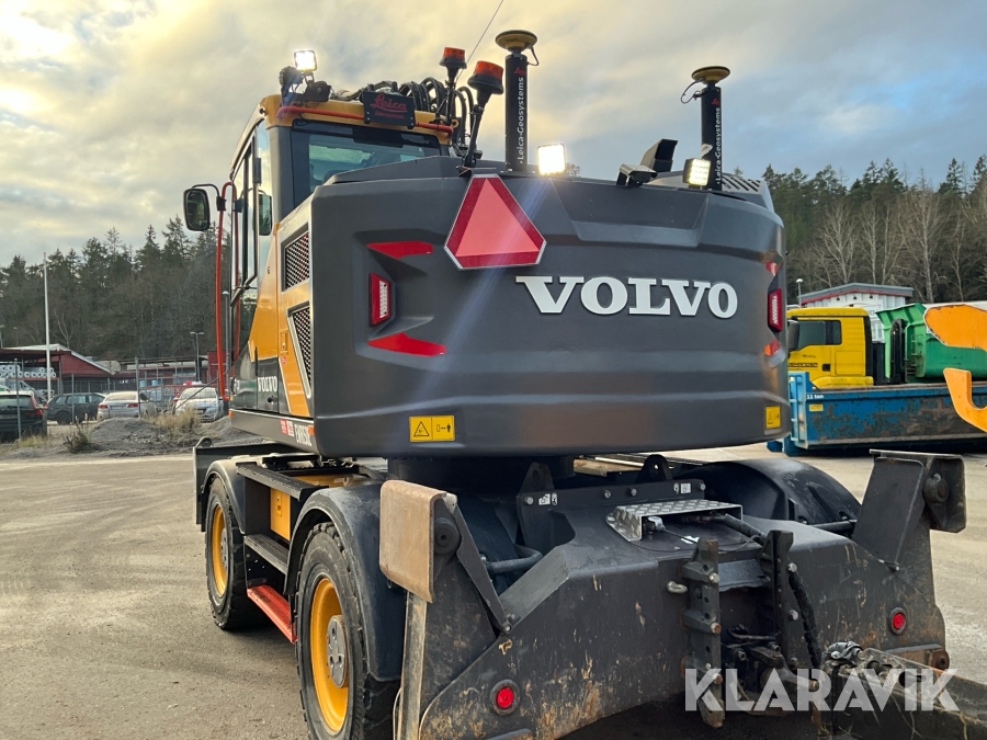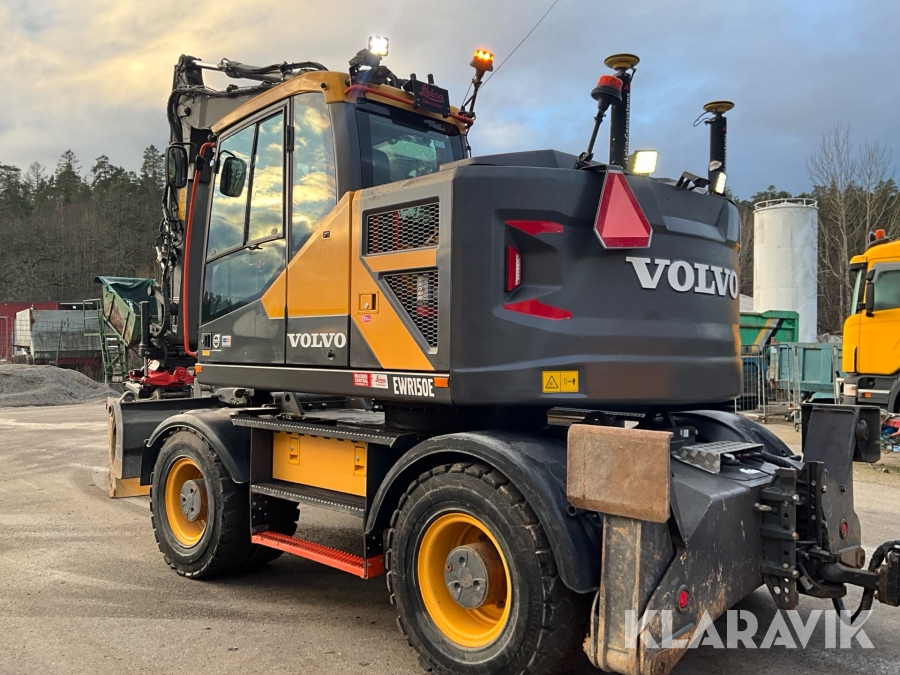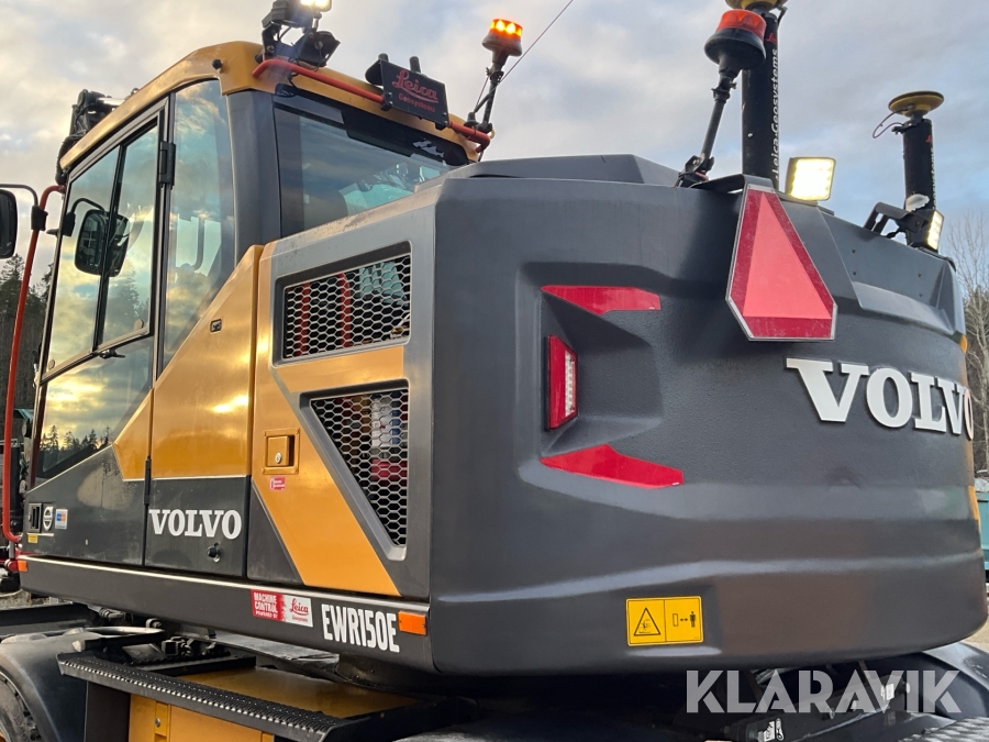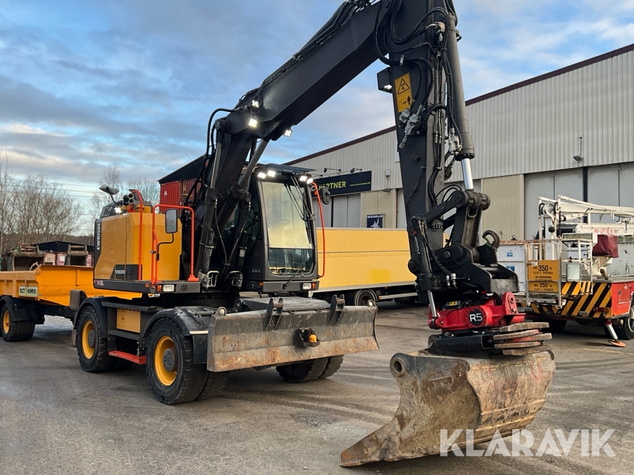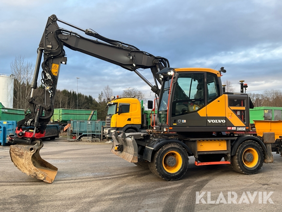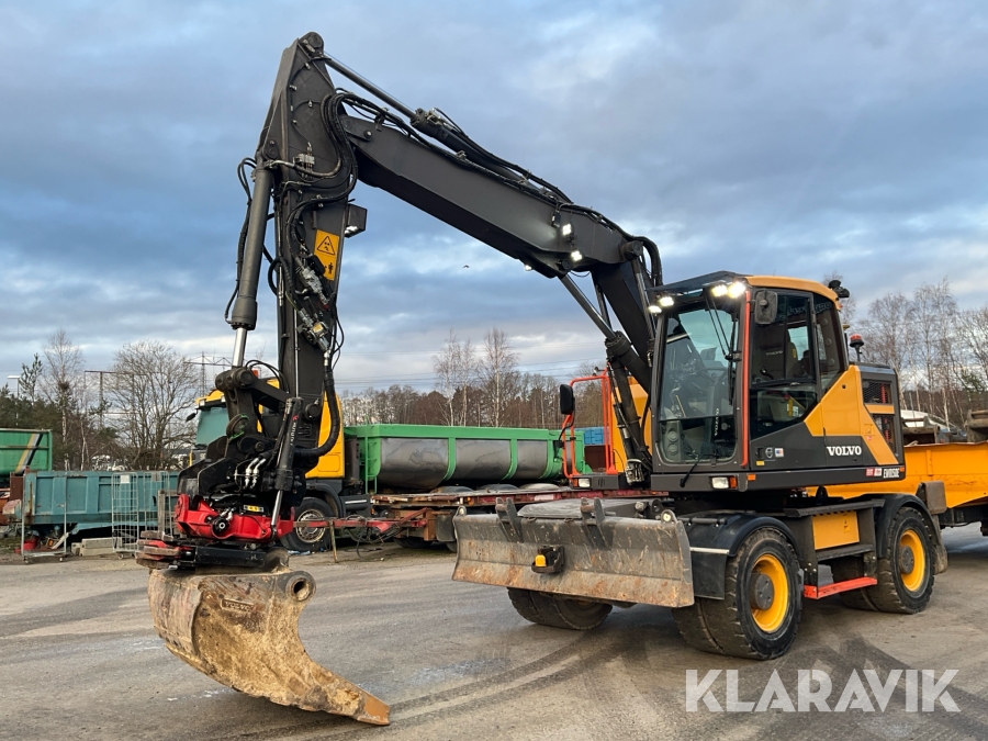 Grävmaskin Volvo EWR150E med rototilt, redskap och vagn