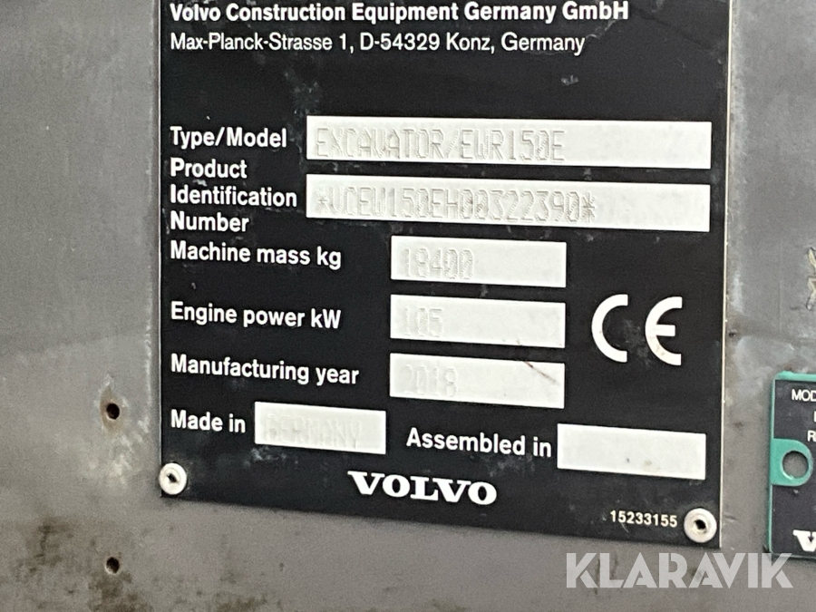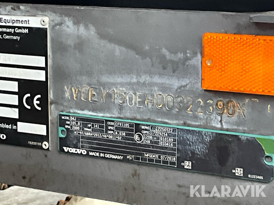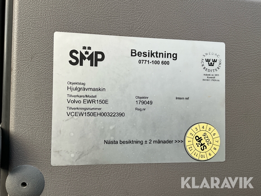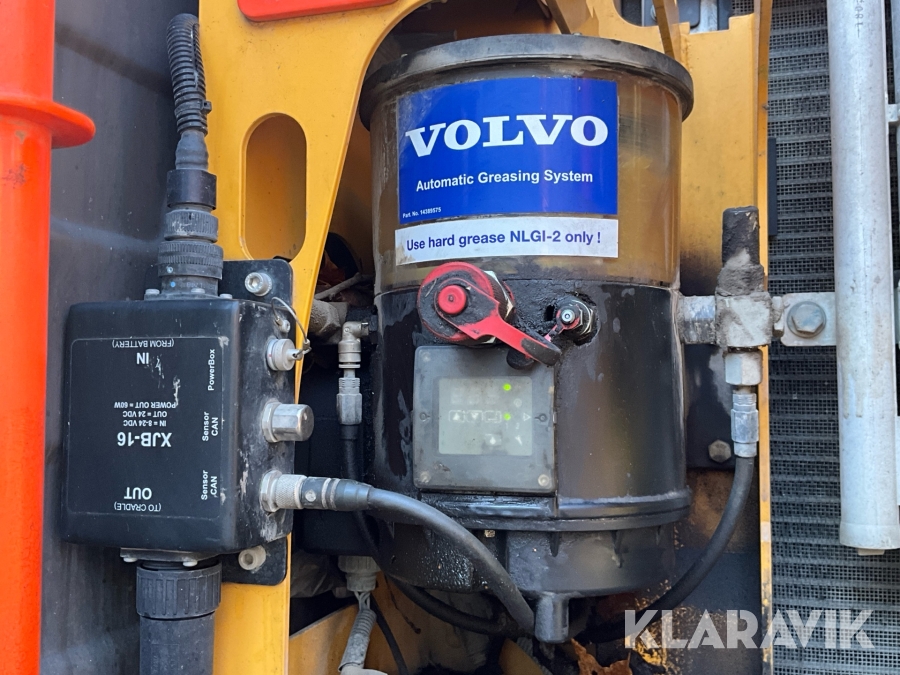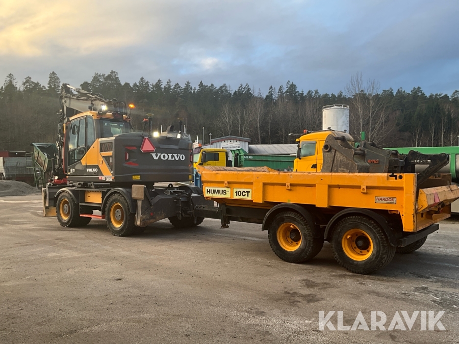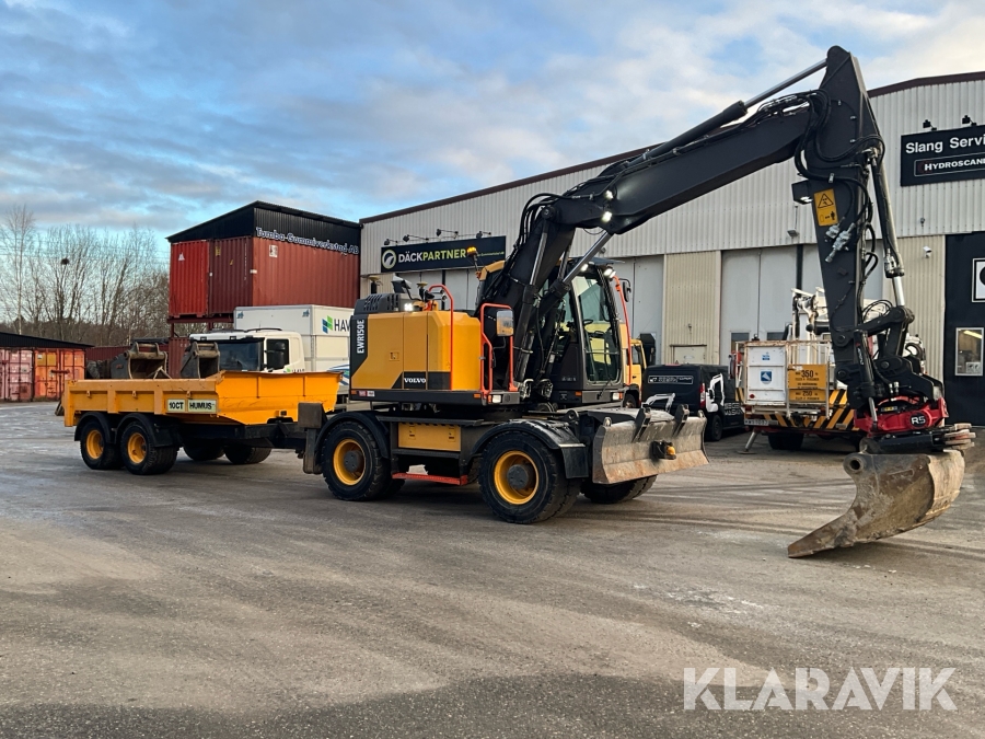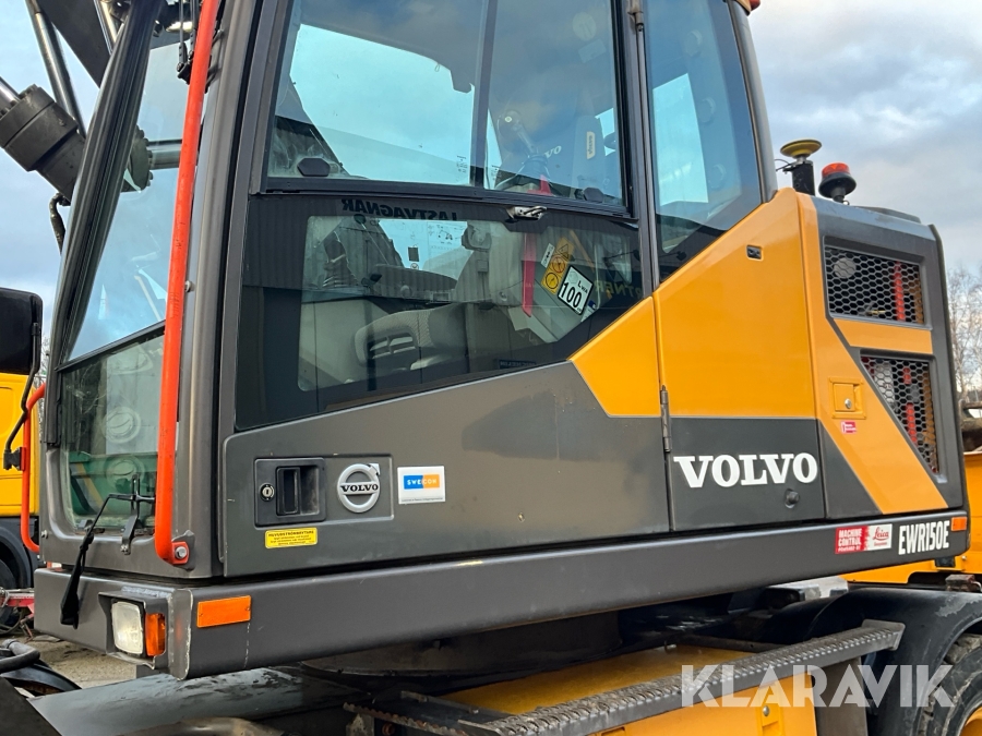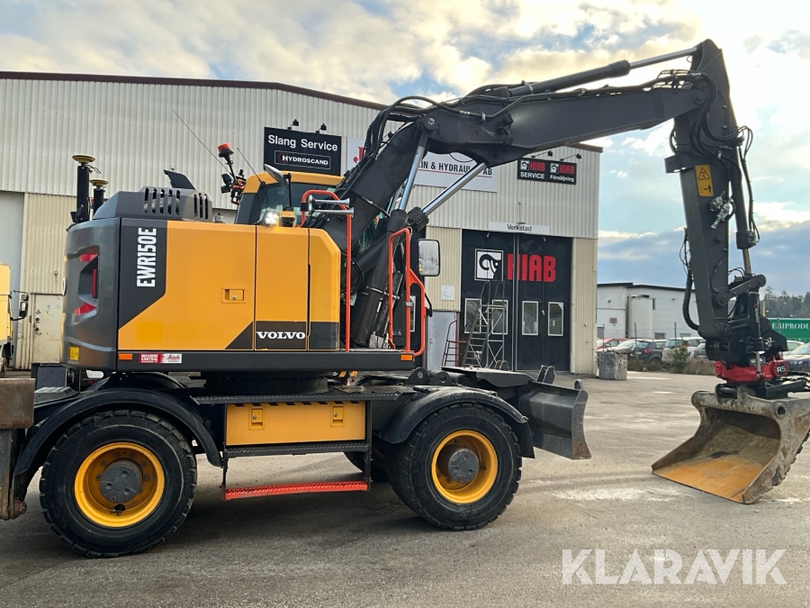 Grävmaskin Volvo EWR150E med rototilt, redskap och vagn