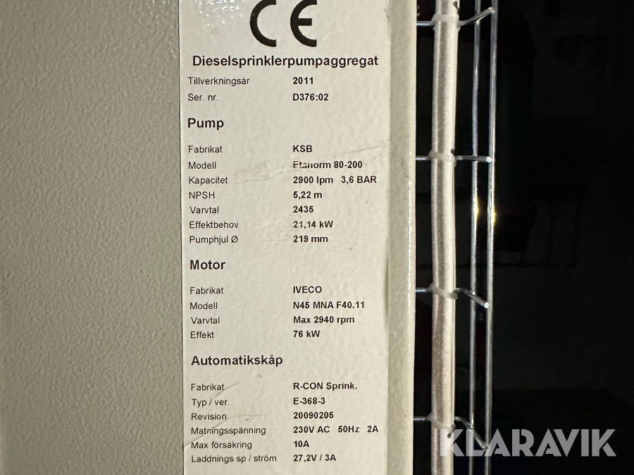 Dieselsprinklerpumpaggregat KSP/ Iveco / R-Con Sprink
